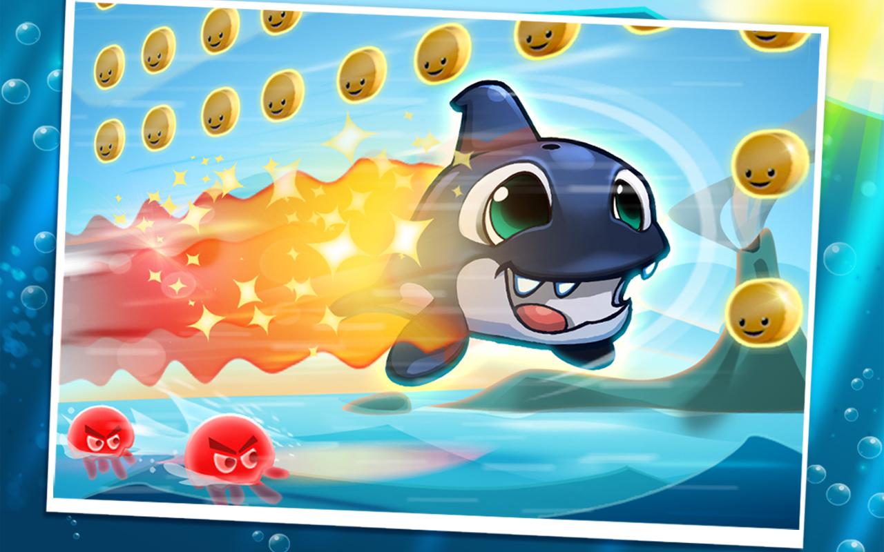 Między tymi przeszkodami pływają również bonusy. Są to fioletowe muszle z power-up'ami (jak np. rakietowe przyspieszenie albo tarcza), albo rozgwiazdy, które dają nam jednego z 4 pomocników.